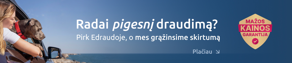 Drauskis internetu svetainėje edrauda.lt – įsigyk TPVCAPD ir pagalbos kelyje paslaugas vienu metu ir dalyvauk prizų traukime! Kiekvieną savaitę – galimybė laimėti vieną iš 3 dovanų kuponų po 50 €, o akcijos pabaigoje – vieną iš trijų didžiųjų prizų – 100 € kuponų prekybos tinkluose Maxima, Lidl arba IKI. Akcija vyksta 2025 m. spalio 13 d. – gruodžio 28 d.